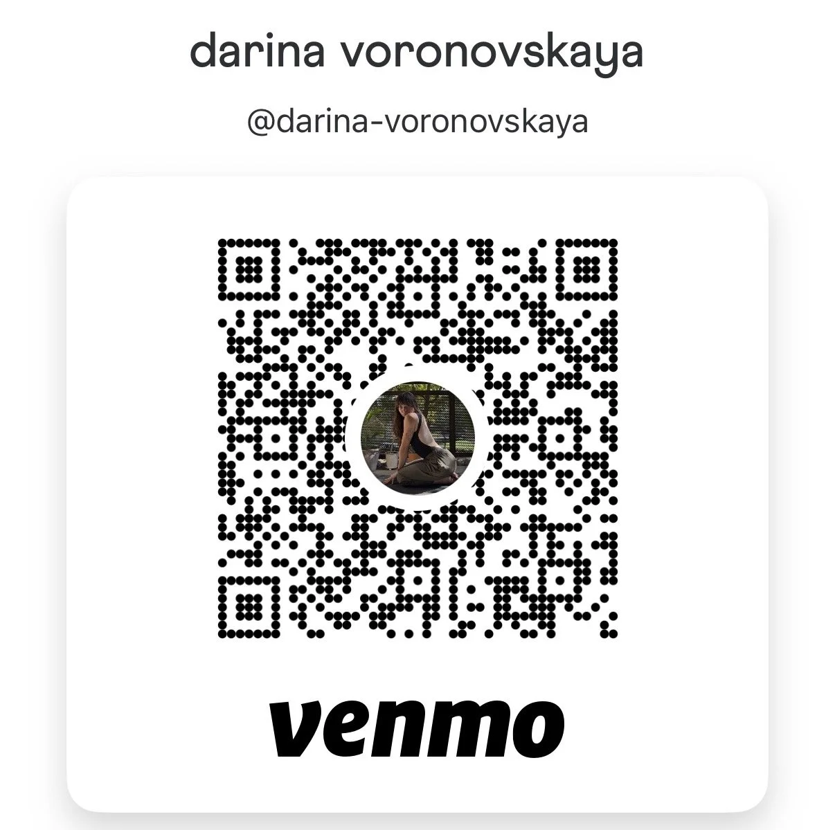 Submit payment to Darina via Venmo using the QR code at the bottom of this page.