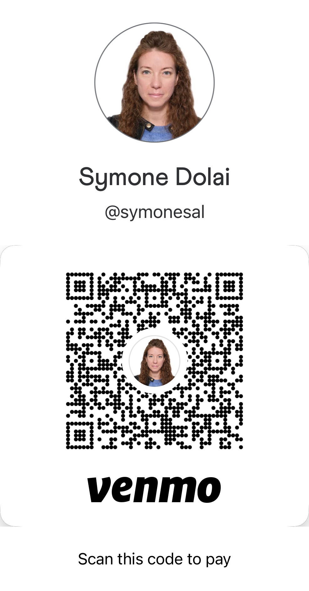 Submit payment to Symone via Venmo using the QR code at the bottom of this page.